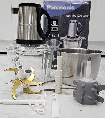 خردکن دو کاسه پاناسونیک 4 لیتر 6+6 تیغ تیتانیوم، موتور حک شده همراه با سیر پوست کن و همزن و‌کاردک