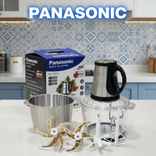 خردکن دوکاسه پاناسونیک- ظرفیت 3/5+3/5 لیتری 6+4 تیغه تیتانیوم طلایی همراه با سیرپاک کن و همزن- ۳ کاره قدرت 3000W وات- مدل AS-1372