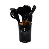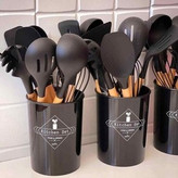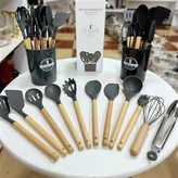 سرویس کفگیر ملاقه ساخته شده از با کیفیت ترین مواد سیلیکون با استاندارد FDA و بدون BPM ، دسته های چوبی از جنس بامبو و یک ظرف نگهدارنده از جنس پلاستیک میباشد.در این سرویس جهت اتصال قسمت سیلیکونی با دسته بامبو از یک متصل کننده فلزی میانی استفاده شده که امکان جدا شدن ان ها در استفاده بلند مدت را به صفر رسانده. سیلیکون به کار رفته در این محصول ساخته شده از مواد غیر سمی ، بی بو و سازگار با محیط زیست است. این مجموعه متنوع که شامل انواع کفگیر ملاقه فرچه لیسک انبر میباشد در برابر درجه حرارت سرما تا -40و گرما 230+ درجه سانتی گراد مقاومت دارد. انعطاف پذیری ، رویه های نرم از خراشیدن و آسیب رساندن به ظروف شما جلوگیری میکند و باعث میشود اشپزی لذت بخش تر شود . این مجموعه متشکل از 11 عدد کفگیر ملاقه و 1 عدد ظرف نگهداره می باشد.