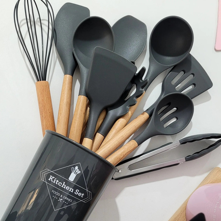 جنس بدنه سیلیکونی شامل ابزار آشپزی کفگیر ملاقه همزن قابلیت شستوشو