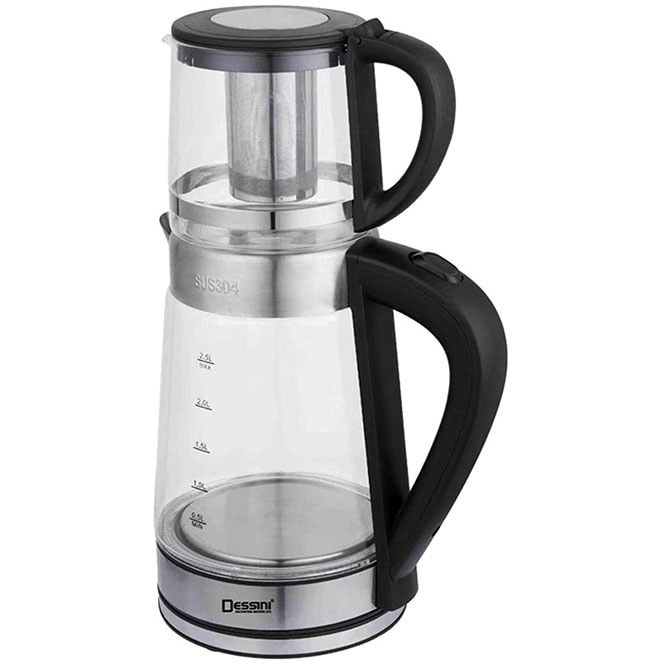 شرکت ایتالیایی دسینی (Dessini) یکی از تولید کنندگان بنام ومشهور ایتالیایی است. این شرکت در تولید انوع لوازم خانگی سابقه درخشانی دارد وبه دلیل کیفیت بسیار بالا ، طراحی های متنوع ،نوآوری ،استفاده از مواد با کیفیت، قیمت مناسب و خدمات پس از فروش این شرکت از استقبال زیادی بین مردم برخوردار است. چای ساز دسینی مدل 5005 یک چای ساز با کیفیت و شیک بوده که این چای ساز ترکیبی از شیشه و استیل است. ظرفیت کتری 2 لیتر و ظرفیت قوری 1.2 لیتر است . وجود لامپ LED به رنگ آبی هنگام روشن شدن این دستگاه به آن ظاهری زیبا می بخشد. کتری و قوری این دستگاه با وجود شیشه ای بودن بسیار مقاوم است و جنس تفاله گیر این دستگاه استیل ضد زنگ است و امکان چرخش 360 درجه روی پایه وجود دارد . این محصول دارای دو درجه آب بوده یکی حالت جوش و دیگری حالت گرم نگهدارنده است. سیستم ایمنی این دستگاه به گونه ای طراحی شده است که هنگامی که آب کتری تمام می شود به صورت اتوماتیک خاموش می شود.